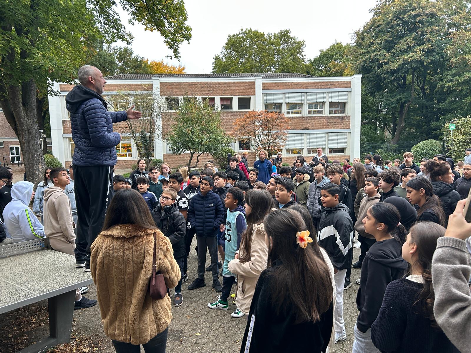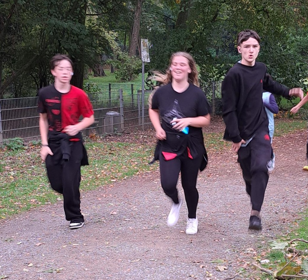 Am Freitag, den 10.10.2025, fand für die Klassen 5, 6, 7, 8, 9 und für die IFK1 und IFK2 der Herbstlauf statt. Die Schülerinnen und Schüler versammelten sich im nahe gelegenen Elbroich-Park und traten nach Jahrgangsstufen gebündelt in einem 30minüten Lauf gegeneinander an. Frau Beckmann, Herr Krause, Herr Morgenroth und Herr Vorwerk liefen mit und unterstützen alle Schülerinnen und Schüler während des Laufs. Das übrige Kollegium motivierte die Läuferinnen und Läufer am Streckenrand. Frau Ixken und Frau Schwartmann von der Schulsozialarbeit bereiteten währenddessen gesunde Stärkungen vor, die alle sportlichen Aktiven zur Belohnung erhielten.