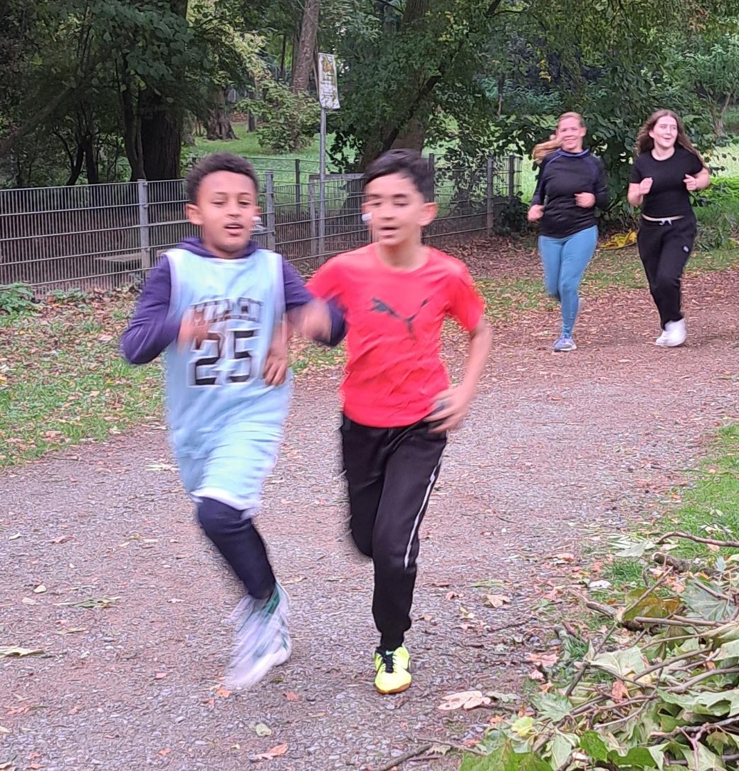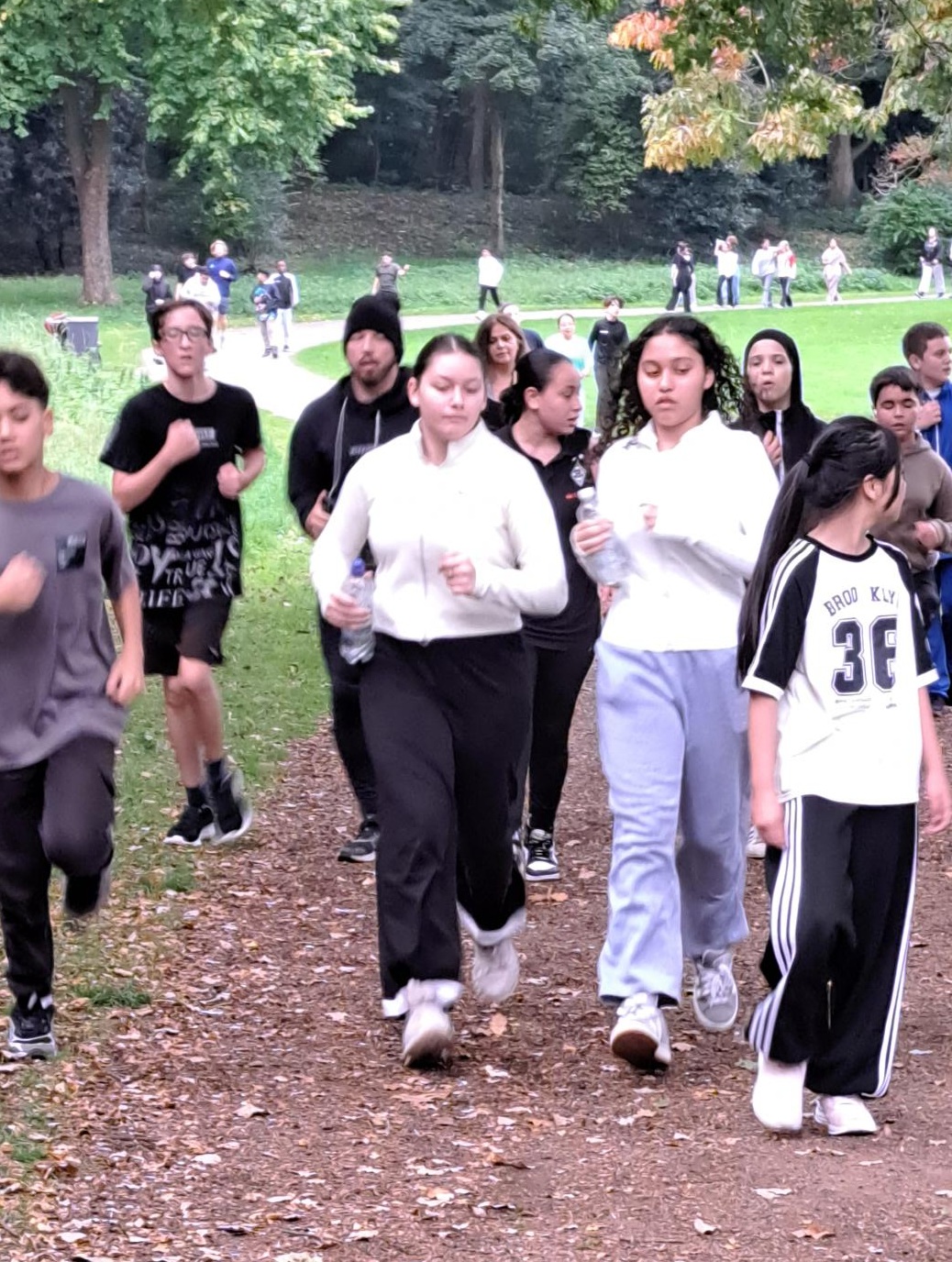 Am Freitag, den 10.10.2025, fand für die Klassen 5, 6, 7, 8, 9 und für die IFK1 und IFK2 der Herbstlauf statt. Die Schülerinnen und Schüler versammelten sich im nahe gelegenen Elbroich-Park und traten nach Jahrgangsstufen gebündelt in einem 30minüten Lauf gegeneinander an. Frau Beckmann, Herr Krause, Herr Morgenroth und Herr Vorwerk liefen mit und unterstützen alle Schülerinnen und Schüler während des Laufs. Das übrige Kollegium motivierte die Läuferinnen und Läufer am Streckenrand. Frau Ixken und Frau Schwartmann von der Schulsozialarbeit bereiteten währenddessen gesunde Stärkungen vor, die alle sportlichen Aktiven zur Belohnung erhielten.
