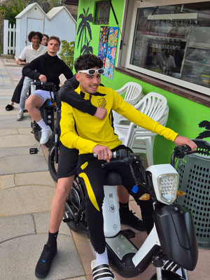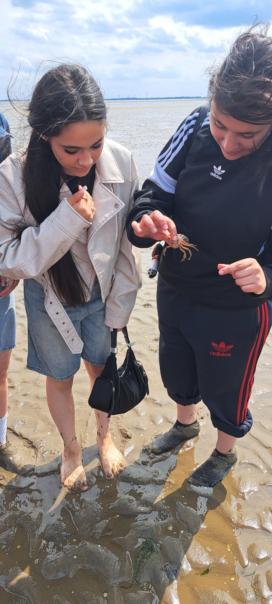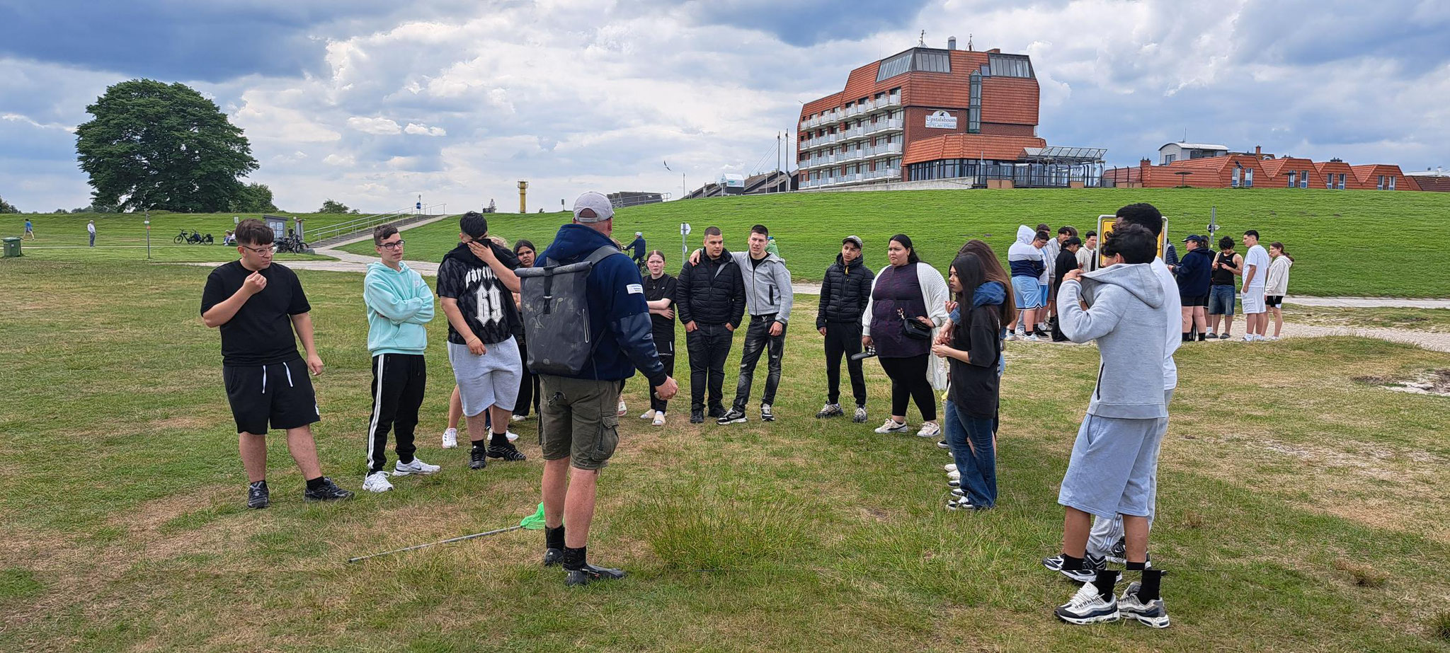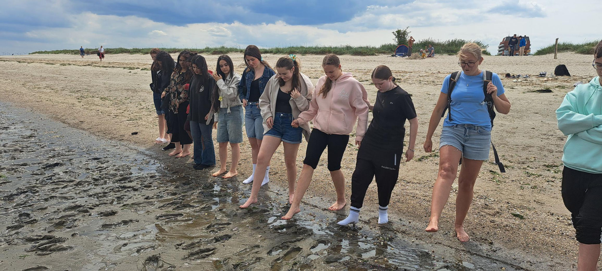 Die Klassen 7a und 7b waren vom 02.06-06.06.2025 auf der niederländischen Insel Ameland. Mit Leihfahrrädern erkundeten die Schülerinnen und Schüler zusammen mit den Klassenlehrerinnen Frau Tews und Frau Schmitz die Umgebung. Die Gruppe radelte nach Holum und Nes. Die Rückfahrt von Nes war wegen des Gegenwinds für alle eine ordentliche Herausforderung. Ein Highlight der Klassenfahrt war die Wattwanderung, bei der beide Klassen die besondere Natur des Wattenmeeres kennen lernen durften. Danach stand eine Schiffstour zu den Seehundbänken auf dem Plan. Auch der berühmte Leuchttum von Holum wurde besichtigt. Natürlich blieb auch Zeit für Entspannung am Strand.