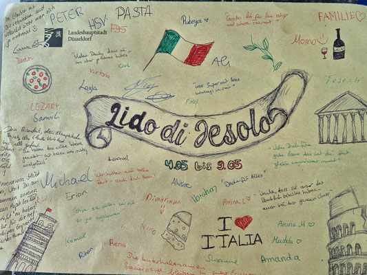 Denn die beiden 10. Klassen der KHS Itterstraße fuhren vom 04.05. bis zum 09.05.2025 als Abschlussfahrt nach Italien und brachten neben dem Gruß auch viele schöne Erinnerungen wieder mit nach Düsseldorf. An der Adria-Küste gelegen waren es vom Hotel in Lido di Jesolo aus nur ein paar hundert Meter bis zum Meer und bis zu vielen Kilometern schönstem Sandstrand.